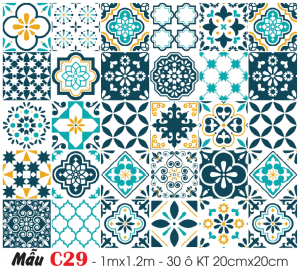 Mỗi set decal gạch bông UV có kích thước chuẩn 1,2m x1m = 1,2 m2tường